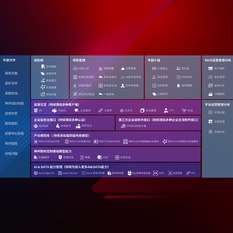 医疗器械产品上市前,,,要熟悉严格与繁复评审标准,,,整理分析监管机构指导文件中的海量信息。。。。企业急需一个智能化解决方案,,,,提升知识管理效率,,,提高评审通过率,,,,以提升其市场竞争力。。